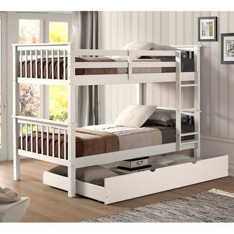 Max And Lily Kids Solid Wood Twin Over Full Bunk Bed Trundle Bed