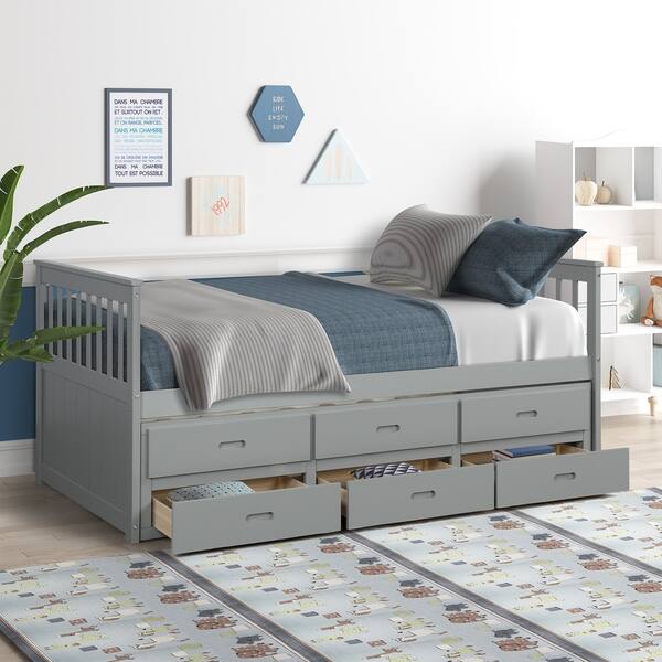 Shop Solid Wood Captain Bed With Trundle And Drawers Gray Free