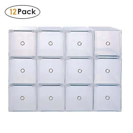 12x Stackable Plastic Shoe Storage Boxes Drawer Women Men Shoes