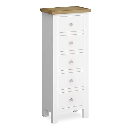 Schreiber Alysa 5 Drawer Tallboy Chest Of Drawers Narrow White