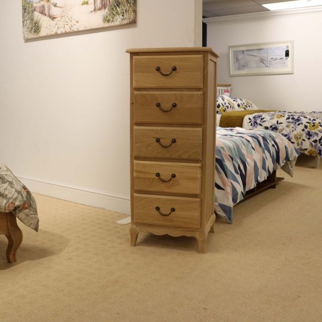 Romance True White 5 Drawer Narrow Chest Of Drawer French White