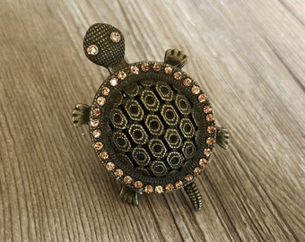 Bronze Turtle Drawer Pull Antique Brass Metal Turtle Shell Etsy