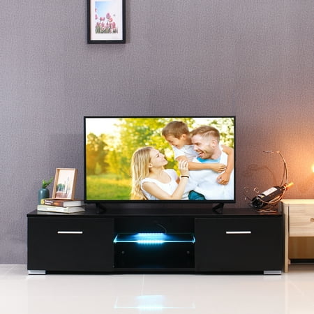 57 Tv Stand Cabinet 1 Glass Shelf 2 Drawers Multi W Led