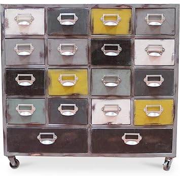 Quirky Industrial Chic 20 Drawer Low Chest With Multi Coloured