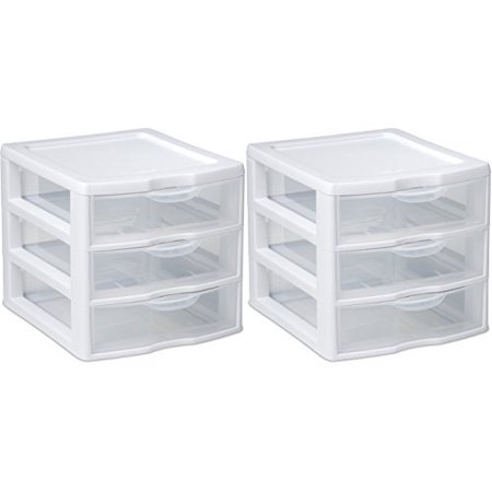 Sterilite Small 3 Drawer Unit White Clear Drawers Walmart Com