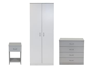 3 Piece Bedroom Furniture Set Wardrobe Chest Drawers Bedside Table