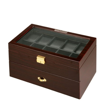 Winado 12 Slots Watch Box Storage Pu Leather Glass Display Drawer