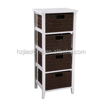 New Storage Unit 4 Drawer Wooden Wicker Baskets White Cabinet