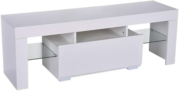 High Gloss White 52 Tv Stand Unit Cabinet W Led Light 2 Drawers