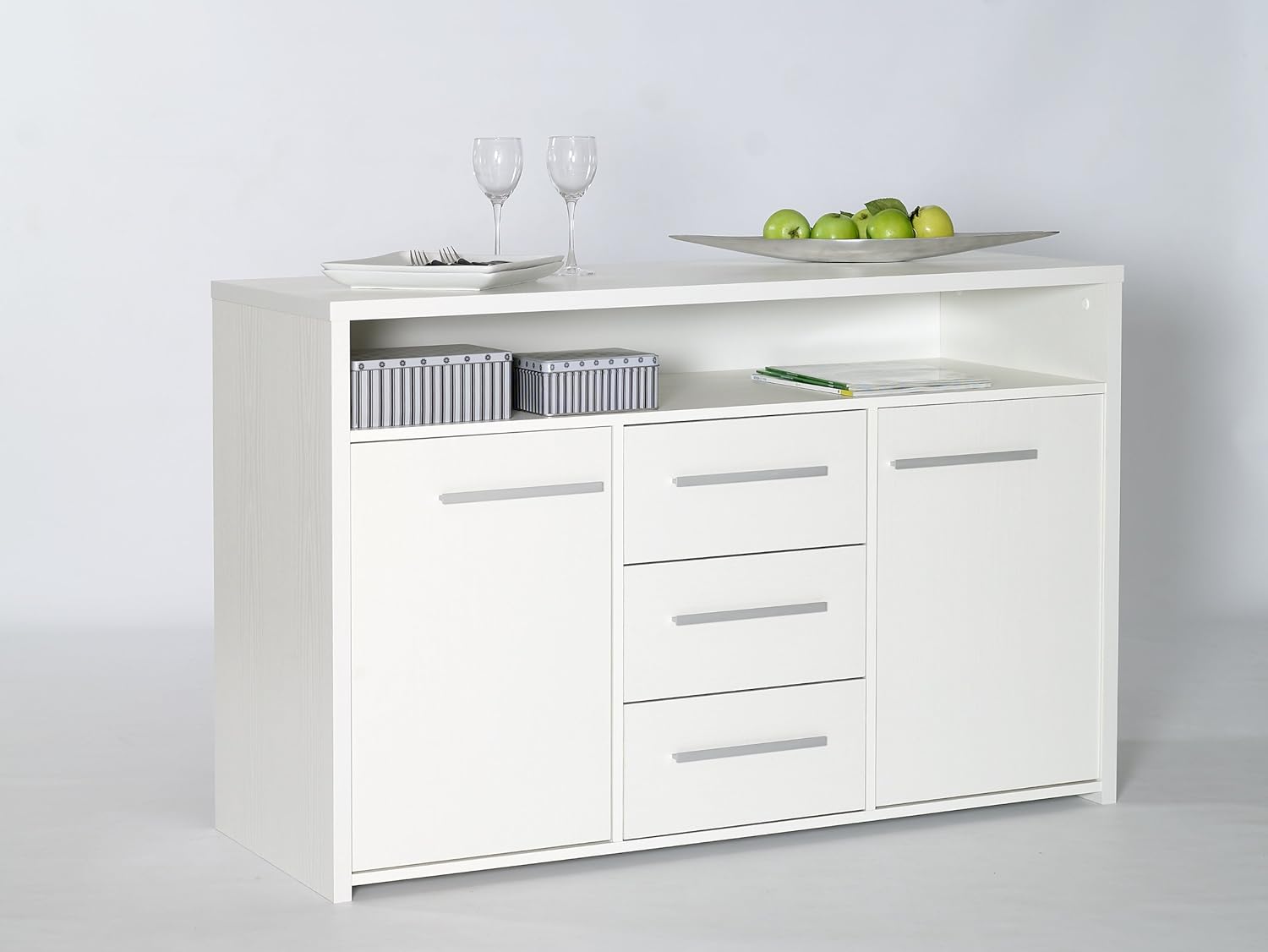 Genoa 3 Drawer Wide Chest In White Textured Mdf And White Melamine