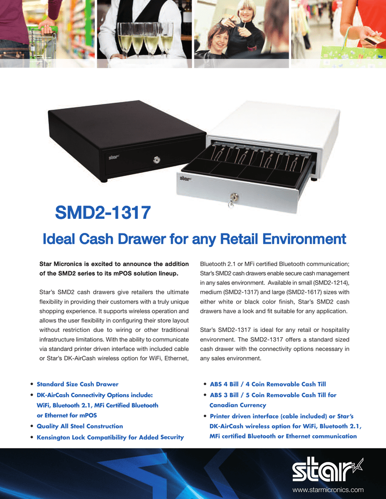Star Micronics Smd2 1317wt44 Wifi Print Driven Cash Drawer White