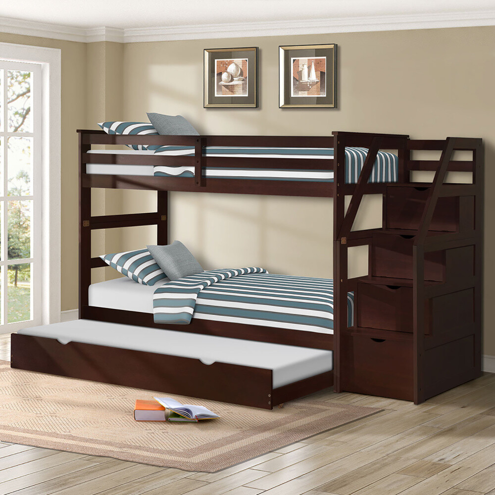 Harriet Bee Flitwick Twin Over Twin Stairway Bunk Bed With Drawers