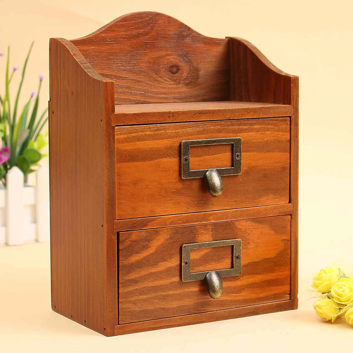 Wooden Storage Box 4 Layers Drawer Desk Retro Househpld Decor